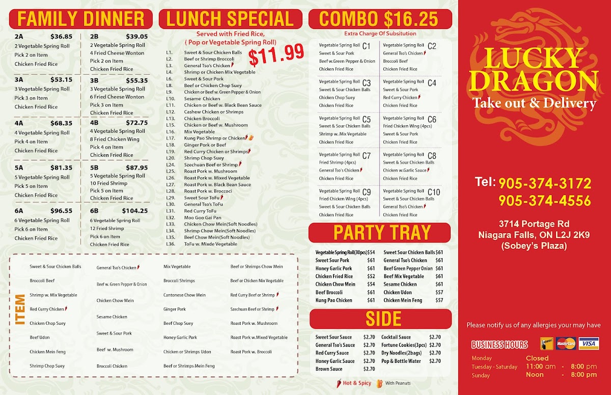 Lucky Dragon(Niagara Falls)takeout Menu